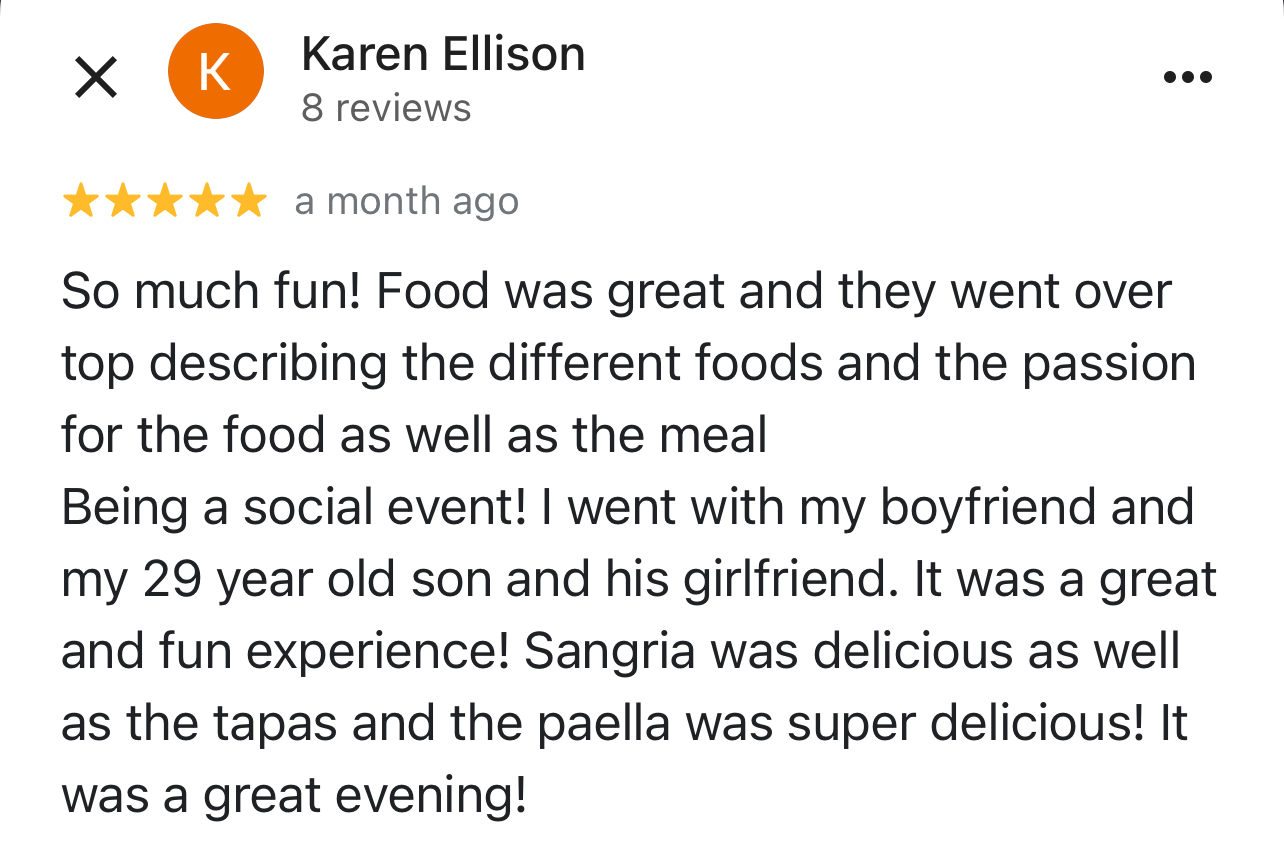 This is not an average Cooking Class. This is a live immersive experience where you'll learn from Dallas' only Spain-awarded team of chefs. These are authentic Valencian techniques, not YouTube recipes or Americanized versions.